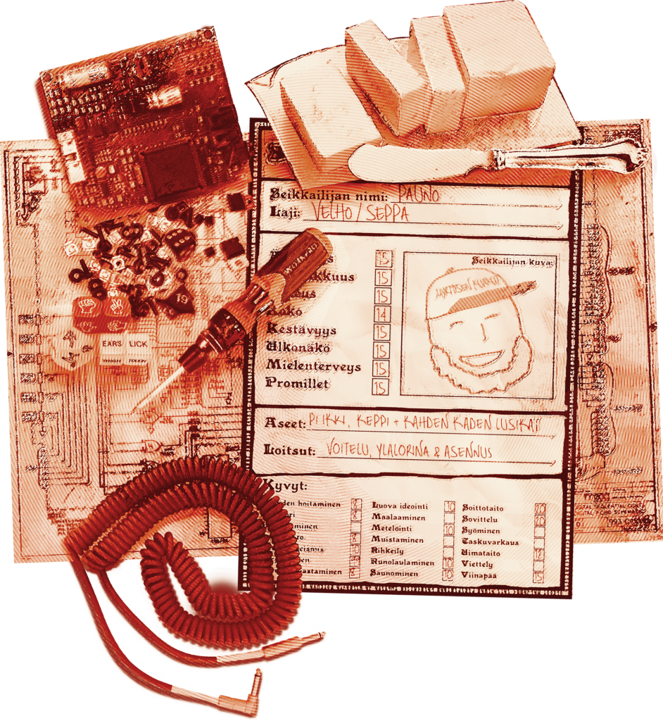 Pauno Liukkonen on seikkailijaryhmän ainoa pesunkestävä ammattiroolipelaaja. Hänen kalenterinsa täyttyy jo kuukausia etukäteen lohikäärmeiden tuhoamisesta, kyborgien jallittamisesta ja noppien heittelystä kaikenkarvaisissa peliryhmissä. Ropeconissakin ehdokkaana ollut Pauno tunnetaan kyvystään heittäytyä minkä tahansa hahmon nahkoihin — hän on yhtä sujuvasti niin vaistojensa varassa toimiva patatyhmä örkki kuin terävänäköinen avaruusvelhokin. Pauno ottaa käden käänteessä haltuun hienostuneimmankin pelisysteemin koukerot ja sääntökirjojen porsaanreiät. Perinteisempien seikkailupelien lisäksi Pauno on myös mukana ryhmässä, joka järjestää maksua vastaan upeita neliosaisia näytöslarppeja erilaisissa juhlatilaisuuksissa.